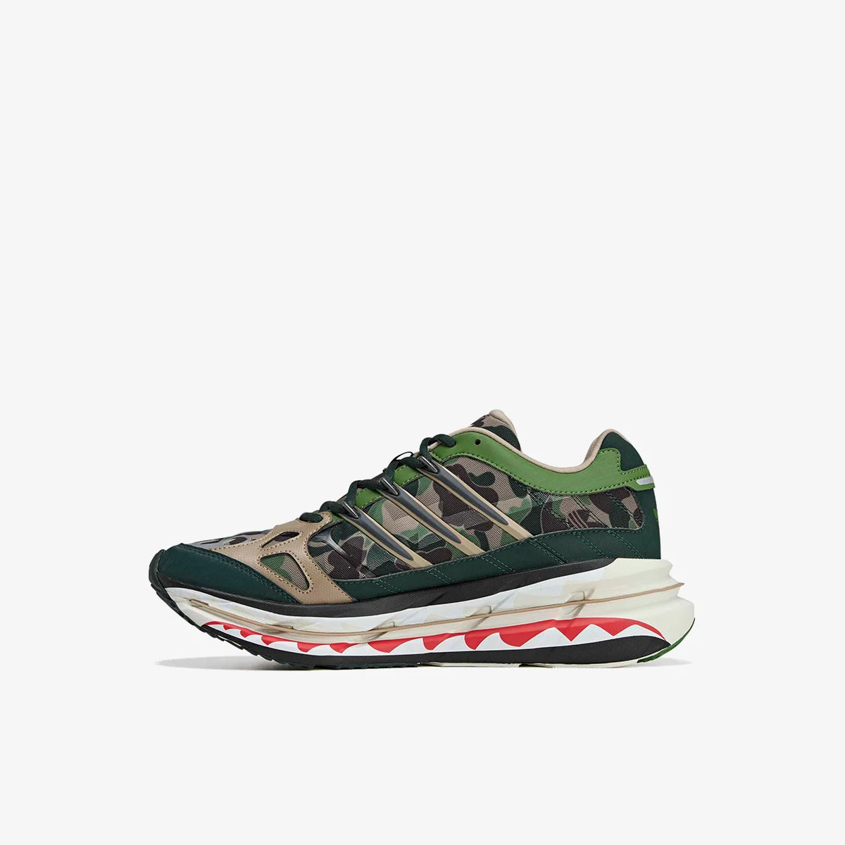 Una silueta runner con ADN técnico que fusiona el legado de adidas con el estilo icónico de BAPE. Diseñada para quienes buscan rendimiento y estética en una sola pieza.
