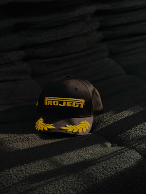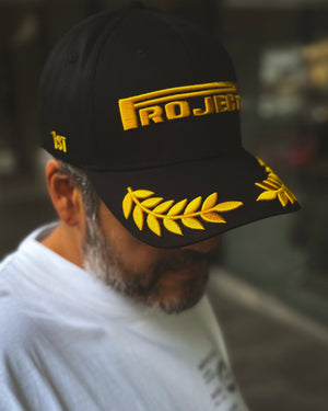 Un spin racing de logo US PRJCT , bordado premium en gold.